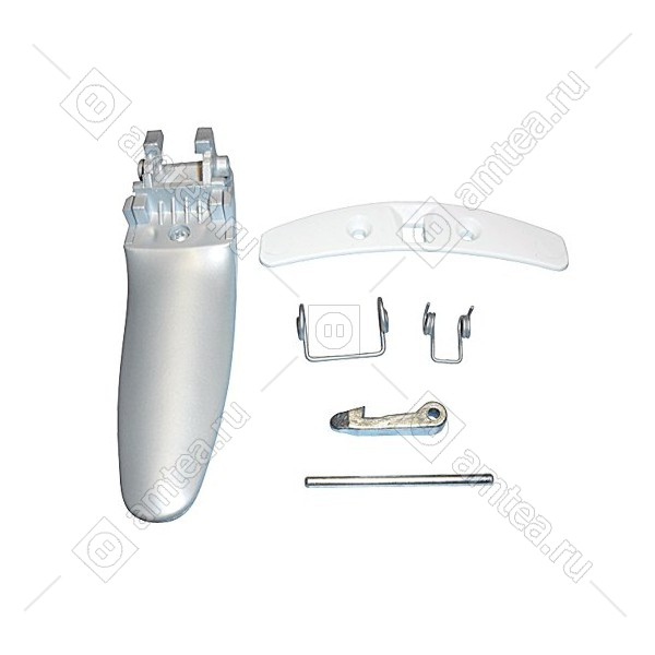 Цвет ручки - серебристый (серый металлик). Поставляется комплектом с крючком, пружинами, осью, и декоративной накладкой. Подходит к моделям: EWF1234, EWF1434, EWF1634, EWF1045, EWF1245, EWF1255, EWF1455, EWF1230, EWF1430, EWF1630, EWF1230, EWF1445, EWF1645, AWF1660, EWF1655, EWS1050, EWS1250, EWF1090.
